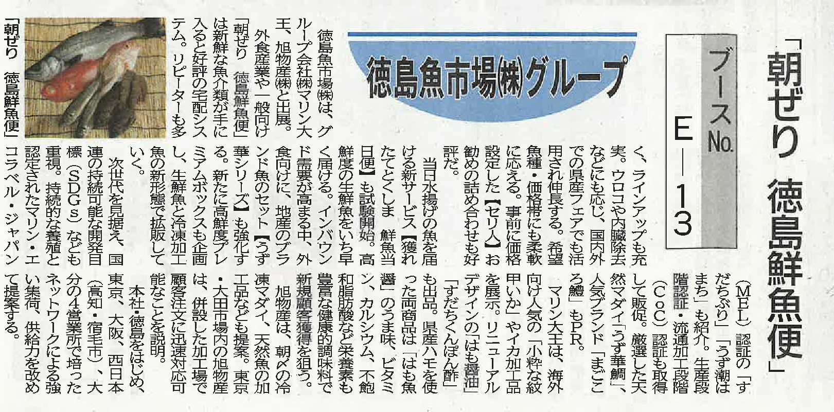 「朝ぜり 徳島鮮魚便」 シーフードショー注目のブース 水産経済新聞