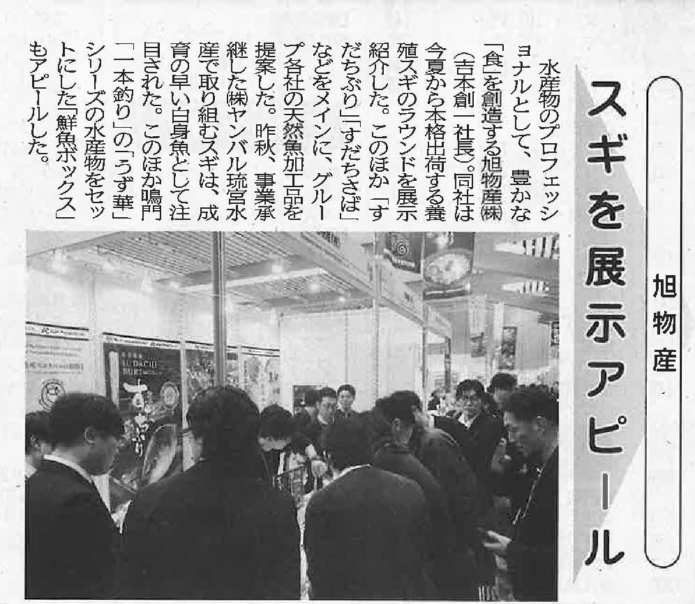 令和8年3月16日付の水産経済新聞にて、 2月25日・26日開催「シーフードショー大阪」の注目ブース紹介として、 グループ会社である旭物産株式会社が掲載されました。
